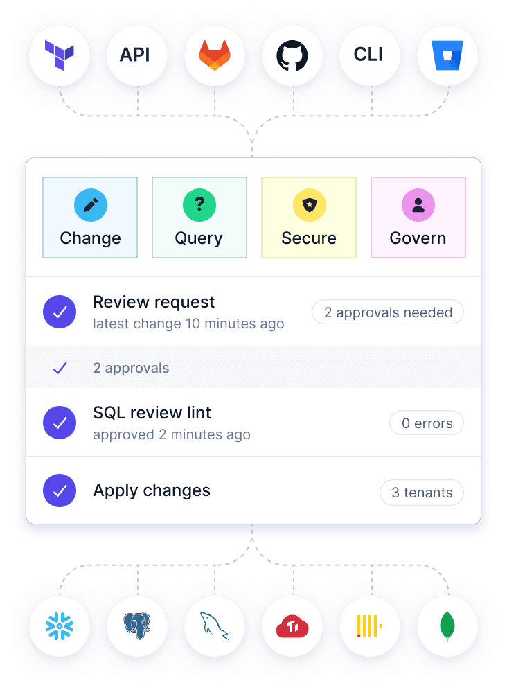 Standardized database schema migrations and data changes with review, linting, and GitOps.